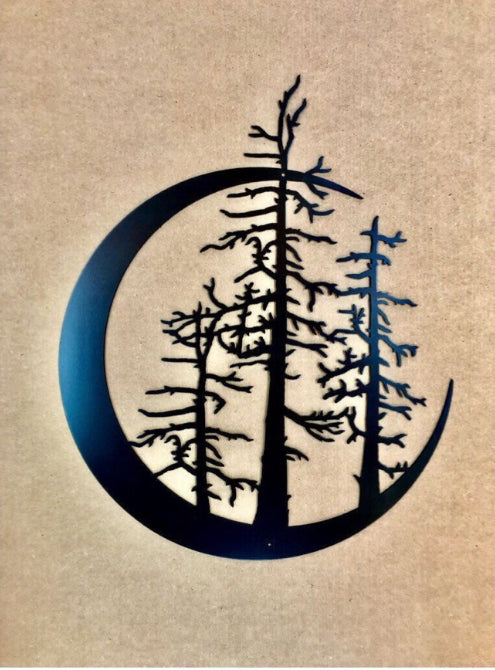 Crescent Moon With Trees - Metal Wall Art