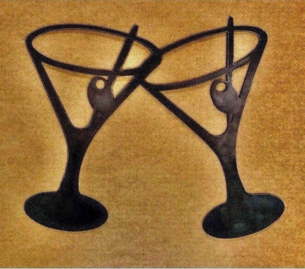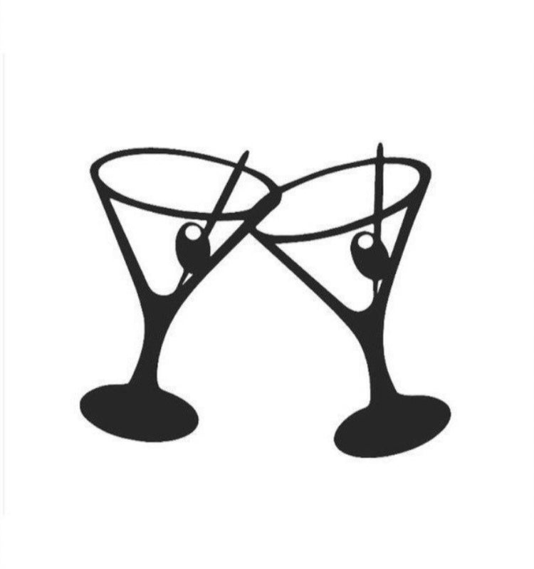 This metal wall art design features two martinis with olives. The design is perfect for kitchen, dining and bar room art. The double martini design is available in 4 sizes for your convenience.