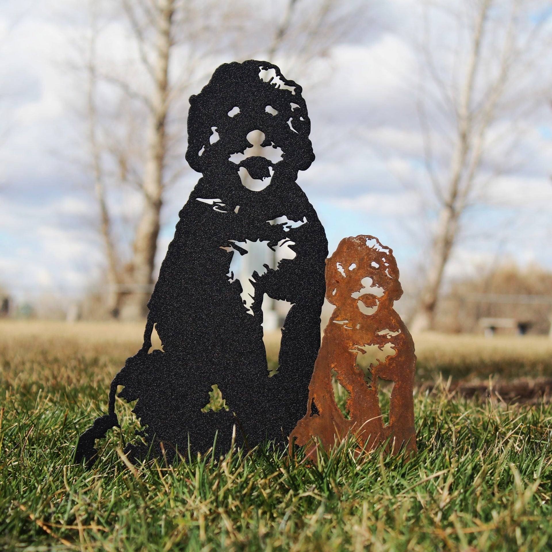 Metal Rescue silhouettes are handmade in the United States from sturdy 11 gauge premium weathering steel, also known as Corten steel. Each design is available in two different finishes- Corten steel and Black.