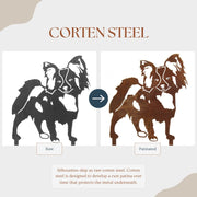 Metal Rescue silhouettes are handmade in the United States from sturdy 11 gauge premium weathering steel, also known as Corten steel. Each design is available in two different finishes- Corten steel and Black.